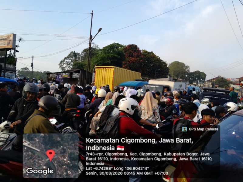 Bogor,mitrapolri.info-Kemacetan parah terjadi di kawasan Pertigaan Cigombong menuju jalur Benda, Sukabumi, Senin (30/03) pagi. Kondisi ini terjadi akibat sejumlah pengendara yang tidak sabar dan menyerobot jalur. Beberapa sepeda motor terlihat mengambil jalur berlawanan arah, sehingga memicu tersendatnya arus lalu lintas.