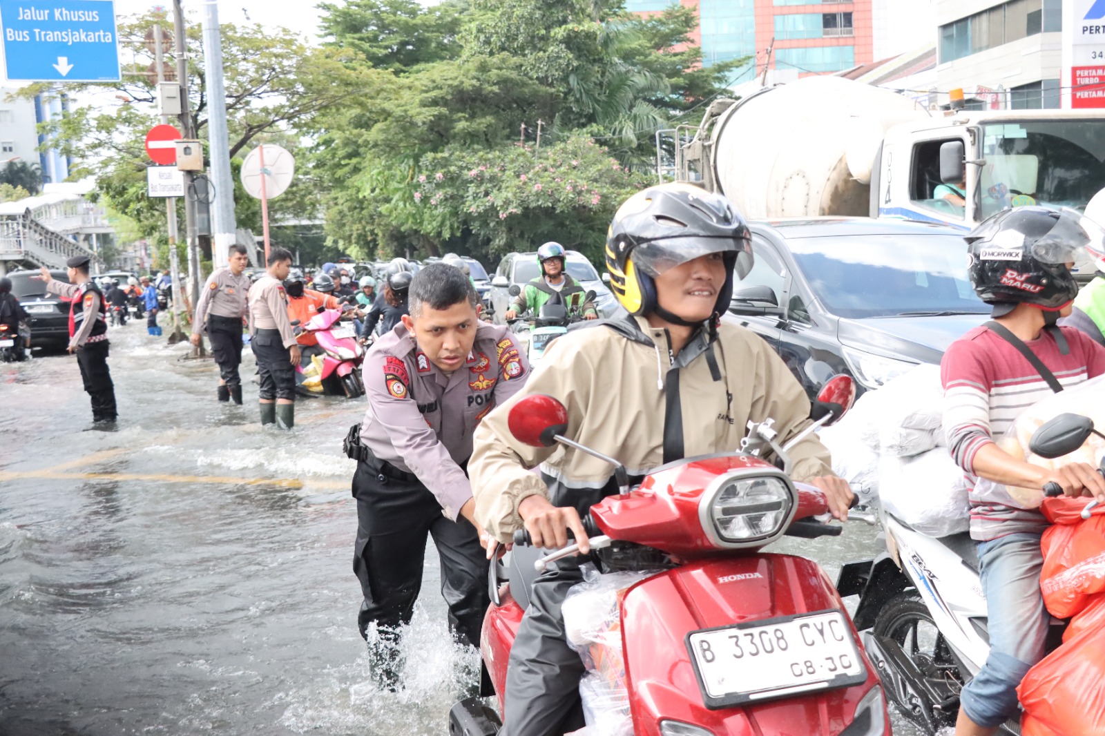 “Kami hadir untuk membantu masyarakat, baik dalam pengaturan lalu lintas maupun membantu pengendara yang kendaraannya mogok akibat genangan air,” ujarnya.