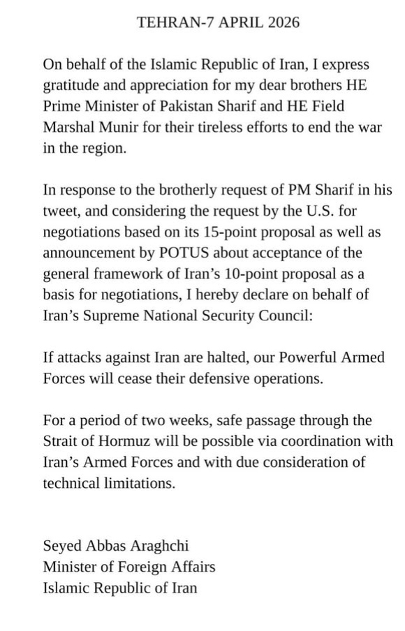Dalam kesepakatan yang dicapai, Iran disebut akan membuka kembali akses pelayaran secara bertahap, sementara Amerika Serikat dan Israel menahan aktivitas militer selama masa gencatan berlangsung.