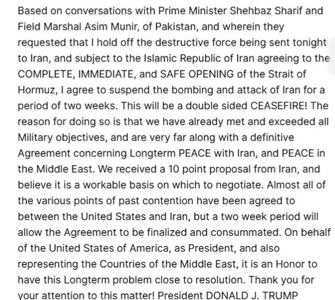Timur Tengah –mitrapolri.info  Amerika Serikat, Israel, dan Iran resmi memasuki masa gencatan senjata selama dua pekan di tengah konflik yang sebelumnya memanas. Kesepakatan ini diumumkan oleh Presiden Amerika Serikat, Donald Trump, sebagai langkah meredam eskalasi yang berpotensi meluas.