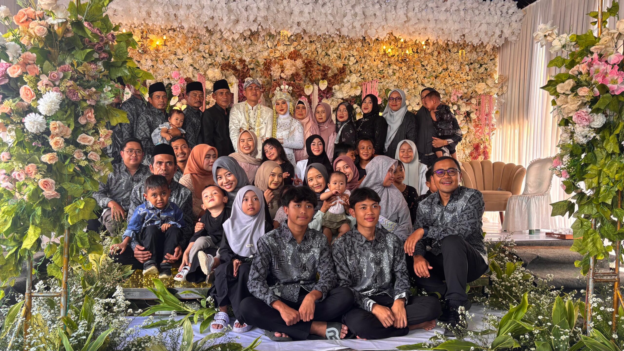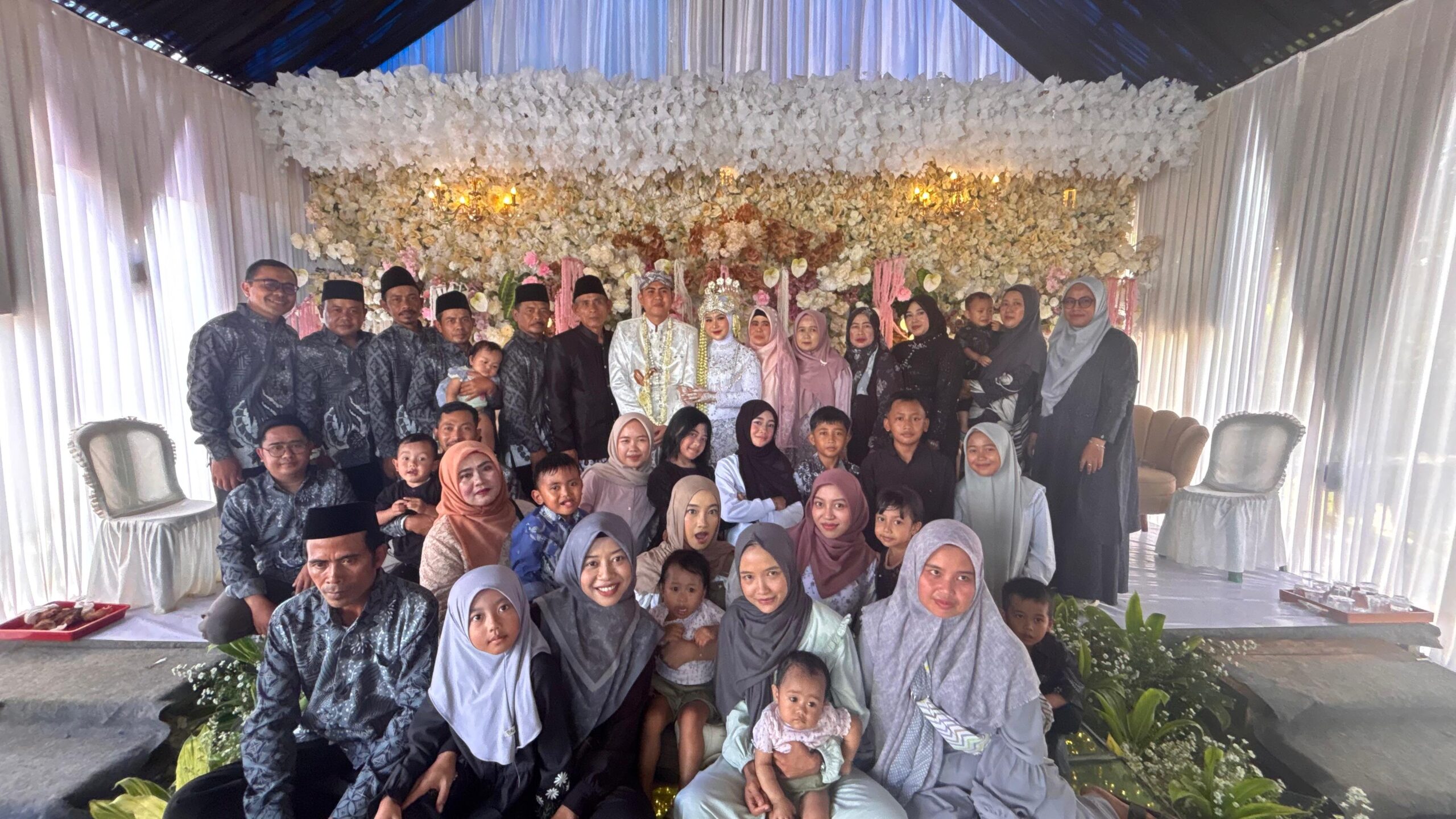 Sekitar 300 orang dari rombongan keluarga besar almarhum H. Iing Jayadi turut hadir mengiringi pengantin pria. Kehadiran rombongan tersebut tampak kompak mengenakan seragam batik khas, menambah kesan anggun dan tertib dalam prosesi adat pernikahan.