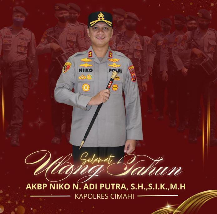 Cimahi,Jawa Barat, – mitrapolri.infoSegenap Tim Redaksi mitrapolri.info beserta seluruh jajaran menyampaikan ucapan hangat dan doa terbaik kepada Kapolres Cimahi, AKBP Niko N. Adi Putra, S.H, S.I.K, M.H, yang hari ini memperingati hari ulang tahunnya.