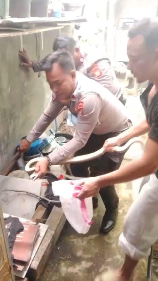 “Setelah menerima laporan dari masyarakat melalui Call Center 110, tim langsung bergerak menuju TKP di Perum Graha Prima Blok DB. Petugas di lapangan berhasil mengamankan ular tersebut dengan peralatan seadanya namun tetap mengedepankan keamanan,” ujar Kapolres Metro Bekasi, KBP Mustopa, SIK, MH,