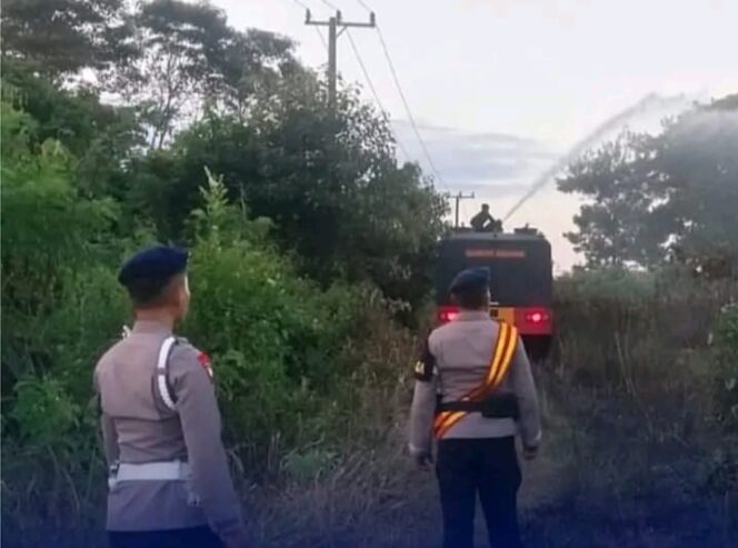 Satuan Brimob Polda Sultra Melalui Batalyon A Pelopor Kerahkan Water Cannon Padamkan Api di Lokasi Kebakaran Lahan